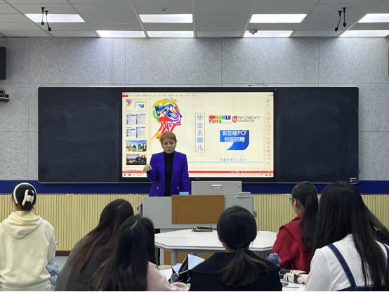 在宣讲会上,孙雯莉女士详细全面地介绍了新加坡的人文社会环境和就业待遇,回顾了威廉希尔学前教育专业毕业生在新加坡幼儿园工作的故事和目前发展情况,热情欢迎威廉希尔学前教育专业有专业素养、有情怀的员工前往新加坡发展,加深中新学前教育发展经验交流。