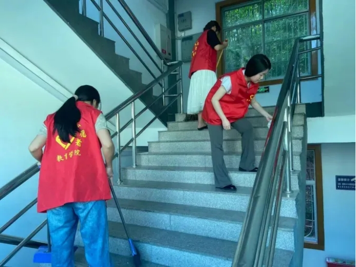 5月23日下午,阳光明媚,在西区操场上,毕业生党员们在张洋副书记的带领下,手持扫帚和抹布,开始了他们的清扫活动。他们的身影在校园中穿梭,不仅清扫了落叶,更扫去了心灵的尘埃,为校园带来了新的生机。