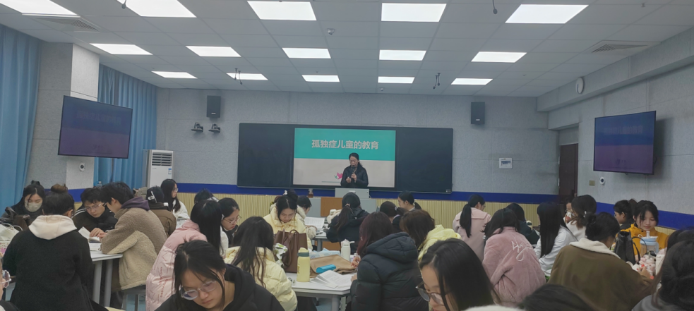 11月26日,公司兼职教师茅箭区快乐童年幼儿园李琴园长来到了学前教育专业员工的课堂,分别为学前专升本2401班和2402班分享了孤独症的相关理念与实践经验。