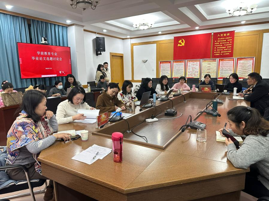 12月12日,学前教育专业在西区306会议室召开了2025届毕业生论文选题研讨会。公司经理郭顺峰、副经理李光、田萍、专业带头人于娜、童安,以及毕业论文指导教师共聚一堂,共同为学前教育专业本科生的毕业论文选题把脉定向。研讨会由于娜主持。