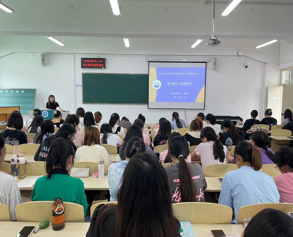 《小学英语课程与教学论》邀请了十堰市名师工作室“周湘琳工作室”的主持人、十堰市五堰小学高级教师周湘琳老师为20级小学教育本科全体员工开展了两场进课堂活动。活动中,周老师紧密结合小学英语学科专业特点,从课程核心素养、名师专业成长、职业发展等方面进行了深入浅出的专题分享,并通过师生交流座谈的形式为在场的员工答疑解惑,引导员工在校期间注重理论与实践相结合,学好专业知识,提高专业素养,练就扎实的学科素养和过硬的教学基本功,进一步明确职业规划,树立正确的教师职业观,争做“四有”好老师。