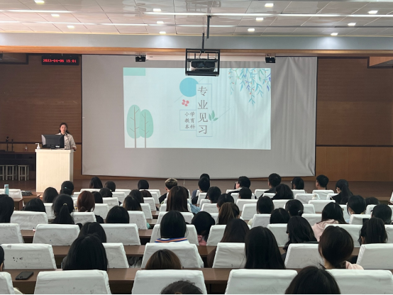 2023年4月6日下午,2022级小学教育专业同学齐聚一堂,在西101报告厅开展教育见习动员大会。参与本次大会的有副经理田萍老师、小学教育专业负责人彭娟老师、教育实践教研室主任赵晶老师、学工办主任张宇老师,以及见习指导教师沈凡老师。