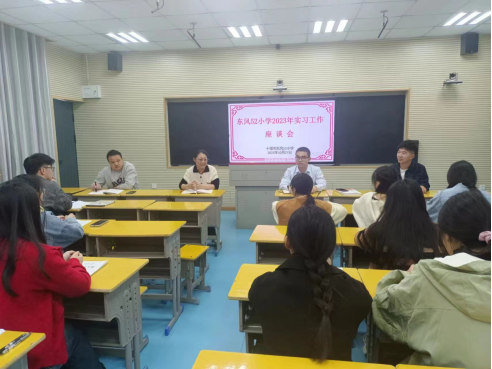 2023年10月27日下午,williamhill威廉希尔分党委副书记张洋带队到张湾区东风52小学开展教育实习中期检查并召开实习员工座谈会,东风52小学副董事长陈艳霞、教务主任范学武及全体实习生参加座谈会。