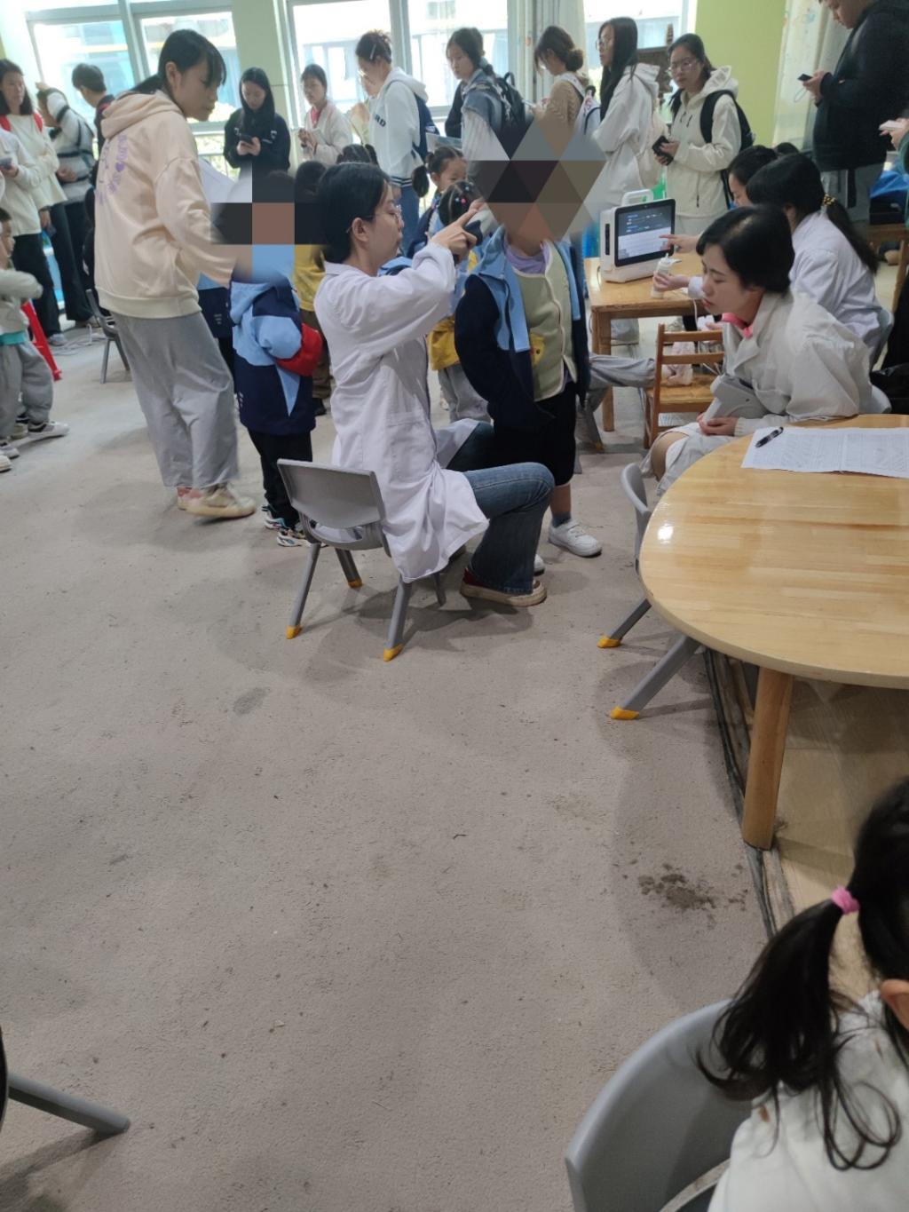 为更好的促进员工发展,提高课程教学质量,10月29日,williamhill威廉希尔在桐华幼儿园开展课程见习专项教研活动。学前教育2201班全体50名同学,课程指导老师彭俭和桐华幼儿园部分教师、副园长、十堰市妇幼保教院的多名医生参与本次活动。本次活动专项针对学前儿童健康教育课程中儿童身体保健教育模块,结合桐华幼儿园常规体检项目,组织员工重点观摩了针对幼儿的牙齿涂氟防龋齿、身高体重测量、骨密度检测、视力听力检查以及血常规检验五个体检项目。参与见习教研活动的同学们认真观摩体检步骤,记录体检数据,并就相关问题咨询了妇幼保教院的医生。