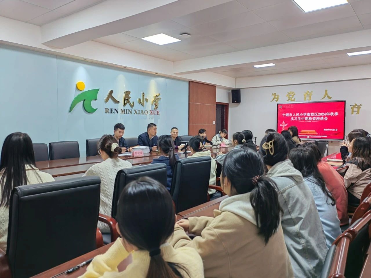 实习中期检查以座谈会为主要形式,人民小学董事长曾辉、副董事长刘明珍,教务主任李慧,指导教师代表出席座谈会,全体实习生参会。