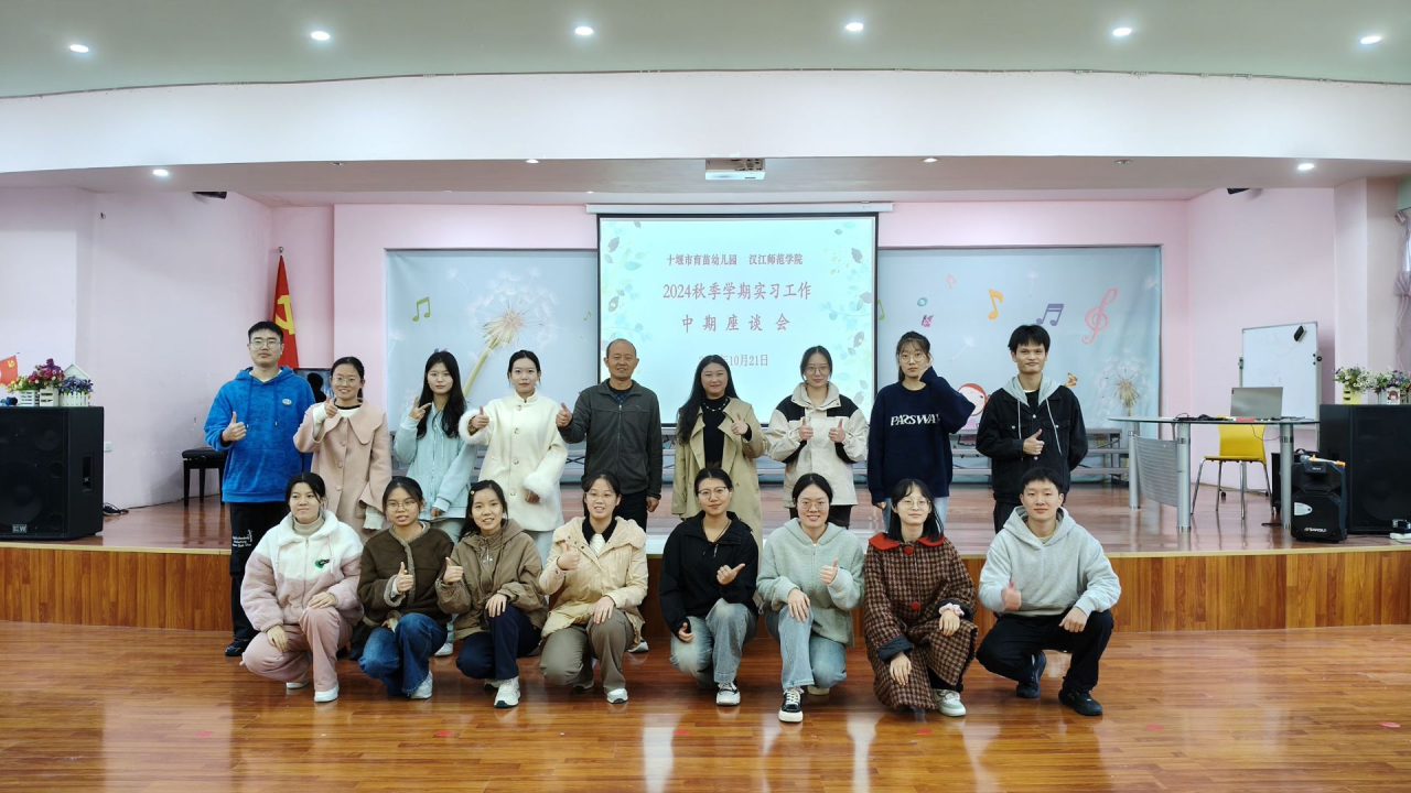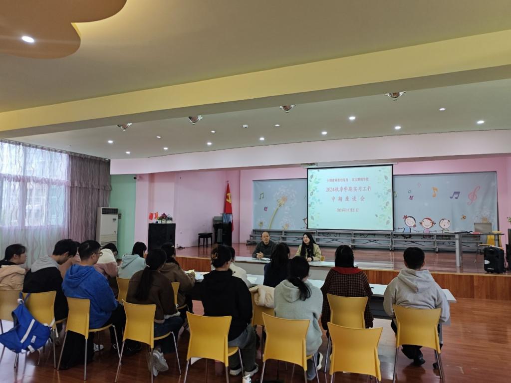 2024年10月21日上午9:00,十堰市育苗幼儿园俞荣华园长与实习带队教师彭盈悦带领15名实习生开展了秋季实习工作中期检查座谈会。