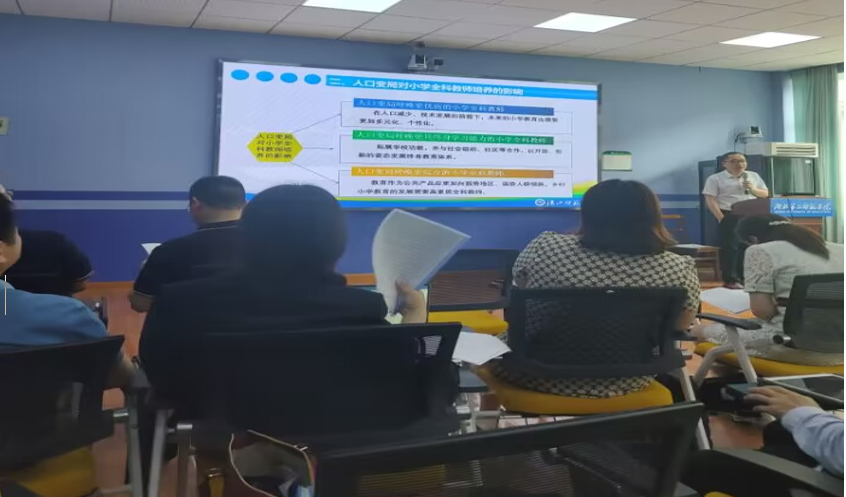 5月28日上午,williamhill威廉希尔经理郭顺峰,小学教育专业负责人彭娟老师还参加了小学教育专业委员会举办的 “新文科背景下小学教育专业高质量发展”主题研讨会,经理郭顺峰以“基于人口变局的小学全科教师培养困境与契机”为题作了交流发言。