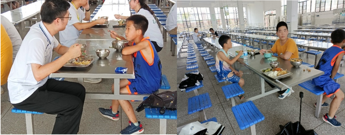 中午,队员们与小同学们来到食堂一起就餐。其中还有一个暖心的小插曲,有一个小男生看到我们队员里唯一的男老师一个人坐在不远处吃饭,就主动坐到了该队员们身边,他说:“我怕老师太孤独了,去陪陪他吧!”乡村孩子的善良与朴实时刻感动着我们。大家在一片祥和的氛围中结束了午餐。