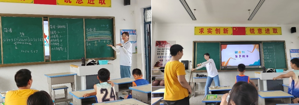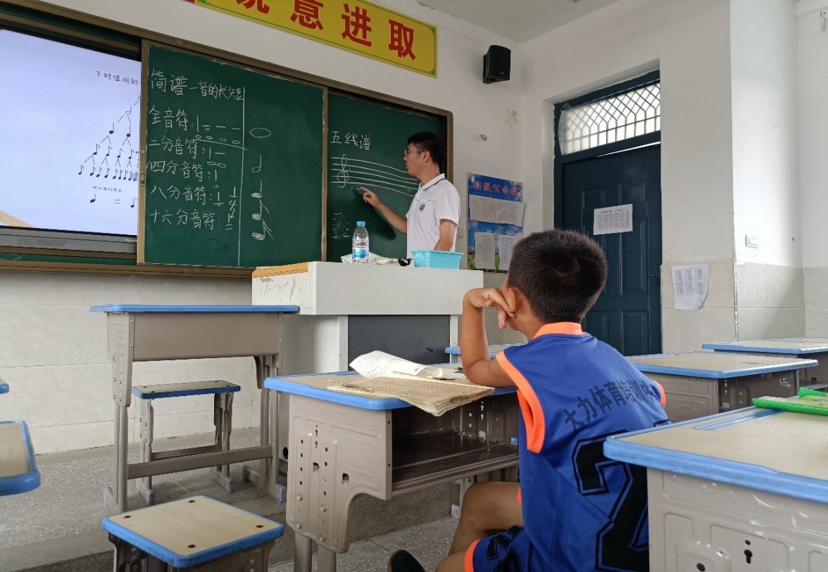 上午,小分队成员张仕锦开始了习家店小学支教的第一堂课,主题是音乐,根据员工的兴趣,设计了不同的教学内容和方法,通过互动式教学,让员工们对音乐的乐理有了初步的认识。小员工们也表现出了对音乐的浓厚兴趣。同时我们运用了同课异构的方法由张钰婧同学对张仕锦同学的教学内容进行了深化与补充,经过两位老师的合作教学,小员工们都面露笑容,表示这个音乐课真的听懂了也掌握了相关乐理知识。