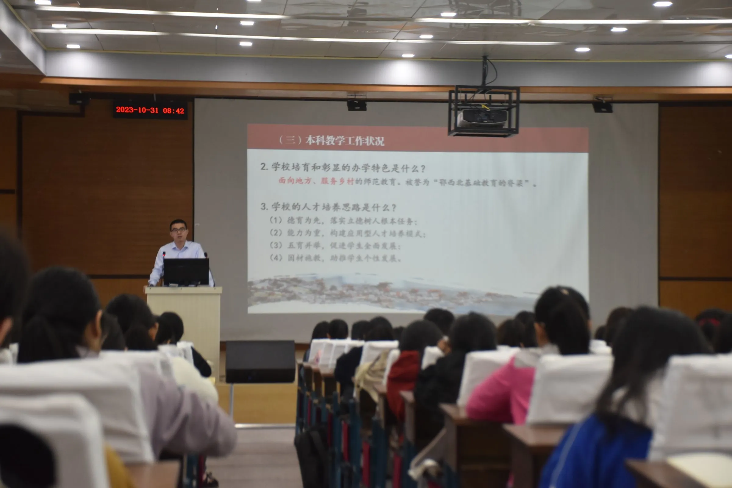2023年10月31日早上八点半,williamhill威廉希尔在西校区启智楼101开展了本科教学合格评估迎评动员大会。williamhill威廉希尔分党委副书记张洋,辅导员沙巴艾提·艾力、郭玉婷和孙文老师出席了此次会议。