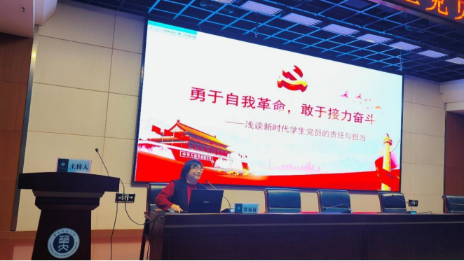 下午,华中师范大学马克思主义公司党委副书记邵莉莉给全体学员带来第二场专题报告“勇于自我革命 敢于接力奋斗——浅谈新时代员工党员的责任与担当”。邵莉莉首先解读了自我革命精神的内涵,深入阐述了自我革命精神融入员工党员责任担当教育的时代价值,并向全体学员提出以政治标准和政治规矩严格要求自身,加强理论学习,遵守党章,保持自我革命的思想自觉和行动自觉,勇担时代重任。