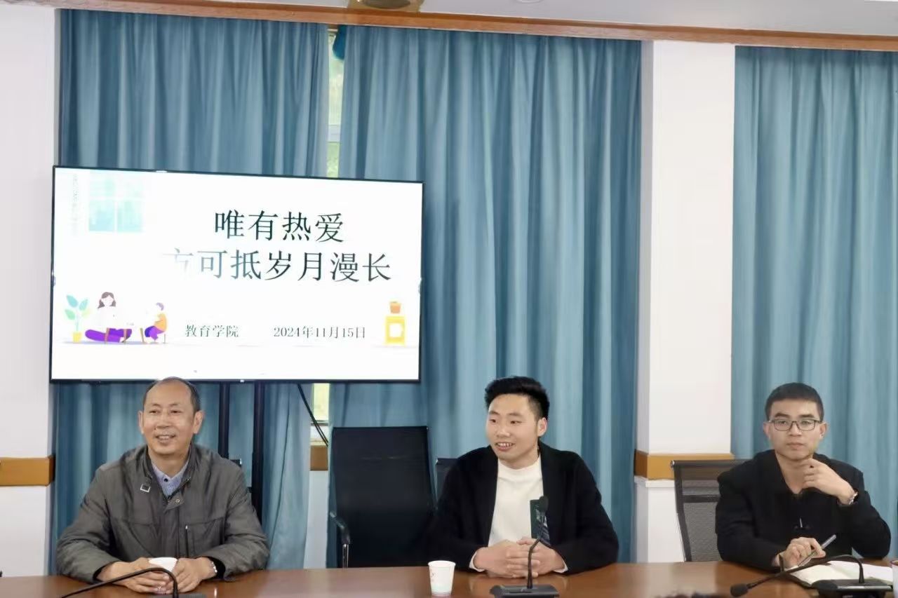 本次交流会主题为“唯有热爱,方可抵岁月漫长”,旨在分享乡村教师教学经验,为williamhill威廉希尔学子提供学习榜样,激励他们在未来的教育道路上坚定信念、勇往直前。交流会上,员工李家海分享了他在威廉希尔的老员工活、毕业后7年的工作经历以及他的个人心得体会。