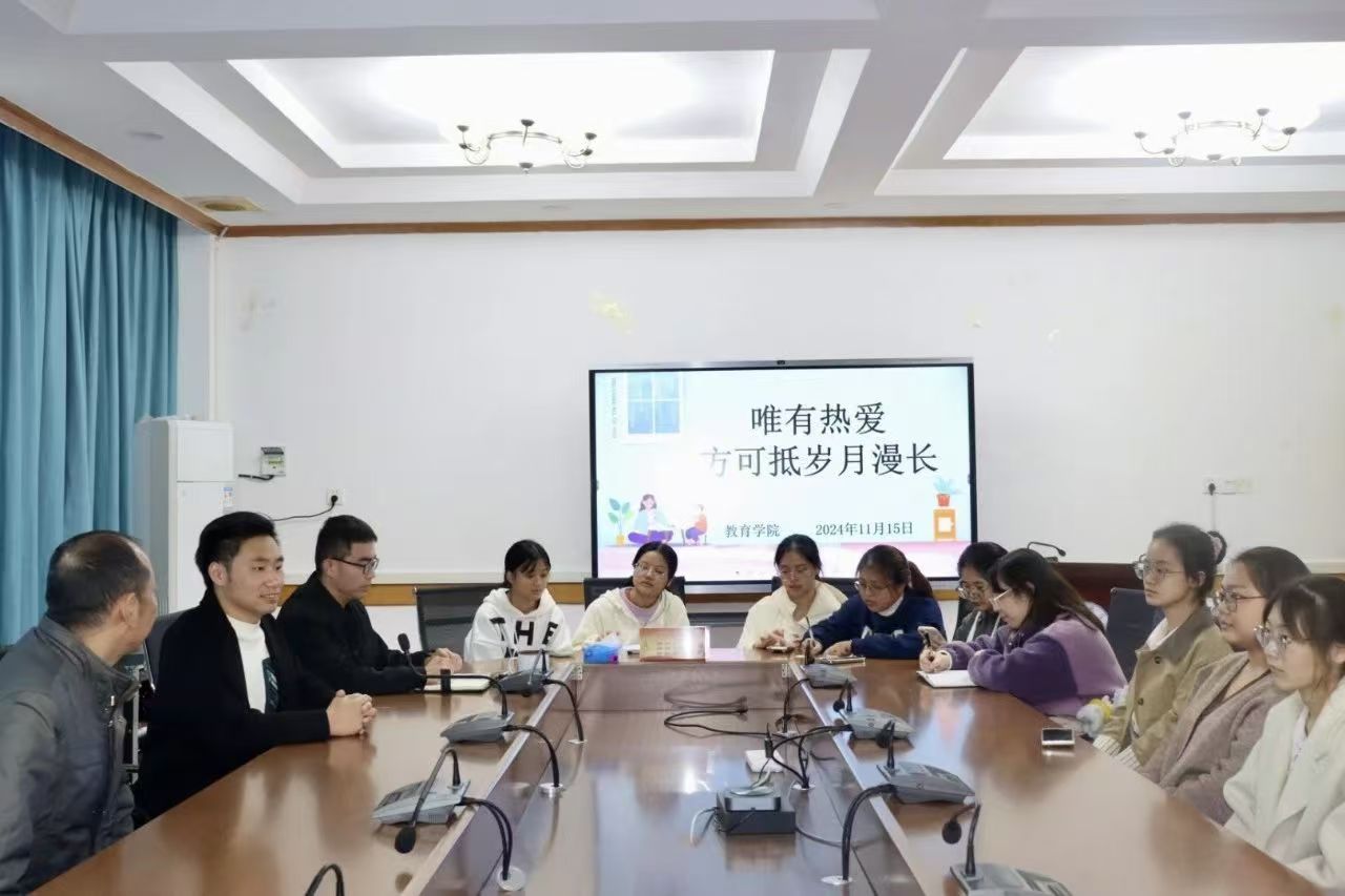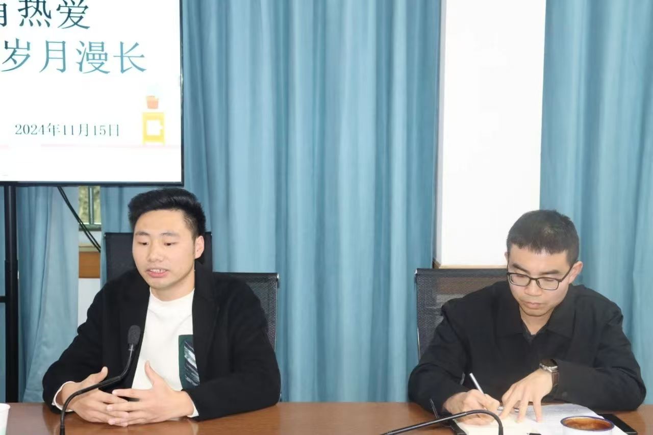 2024年11月15日下午三点,williamhill威廉希尔在西区启智楼306会议室成功举办了主题为“唯有热爱,方可抵岁月漫长”交流会。参与本次交流会的有williamhill威廉希尔分党委书记曹赟、分党委副书记张洋,优秀员工李家海以及部分williamhill威廉希尔员工。