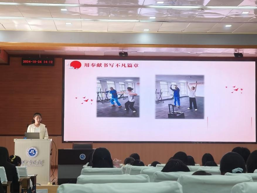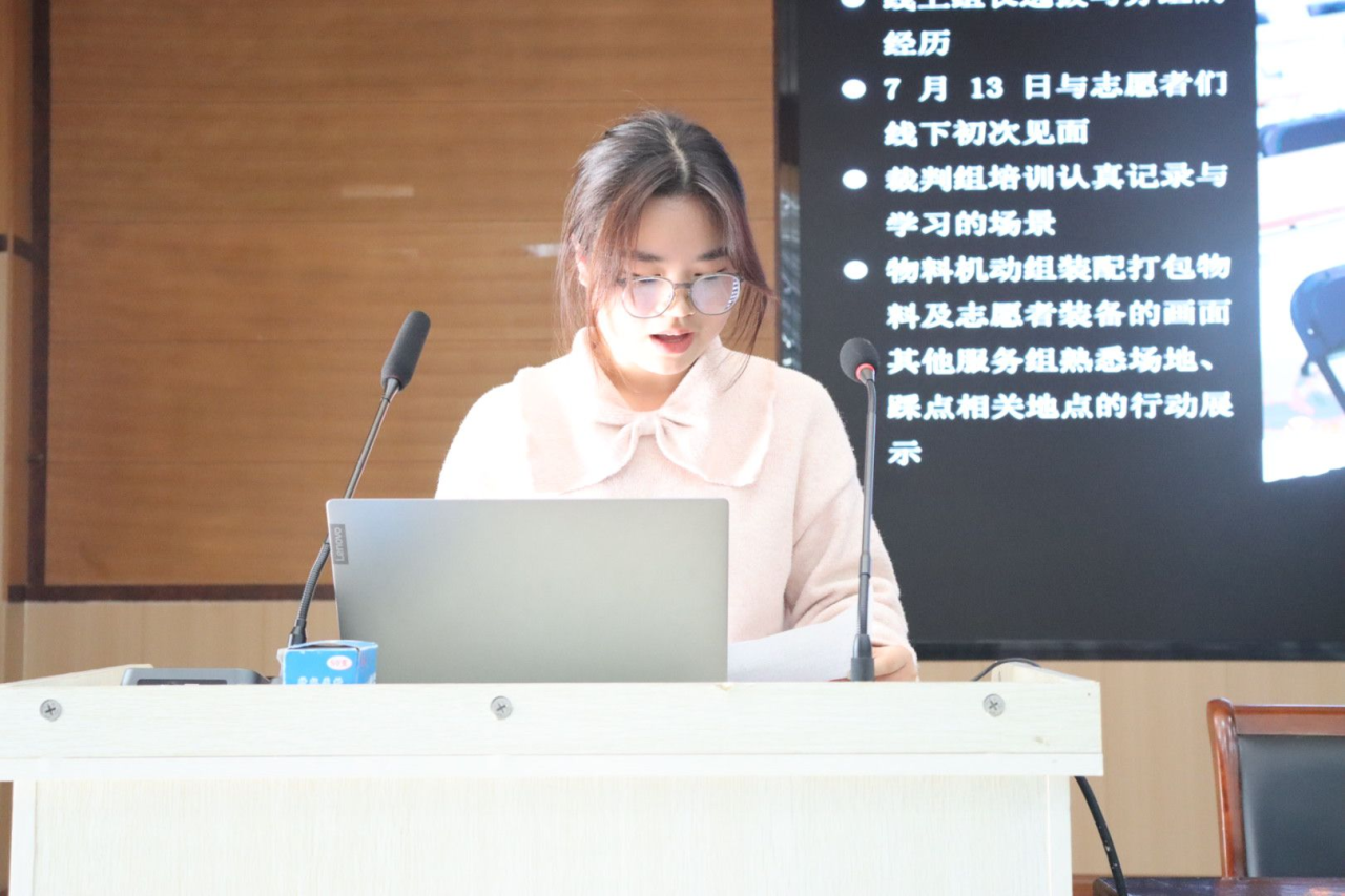 个人社会实践代表唐雪玲分享了她的社会实践经验。她作为团队负责人,秉承奉献精神,完成了各项社会实践任务,展现了青春的力量和担当,同时也在志愿服务中放飞了青春理想。