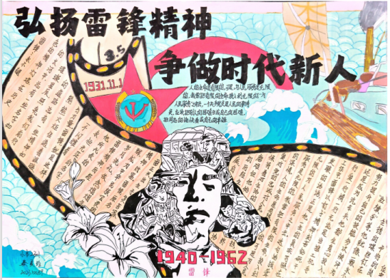 此次活动自开展以来,得到了全院师生的积极响应,同学们踊跃参与,用手中的画笔和文字,诠释着对雷锋精神的独特理解与传承。活动期间,我们共收到了来自不同年级、不同专业的众多优秀作品。每一幅手抄报都饱含着同学们的热情与心血,有的用细腻的笔触展现出红色文化的传承底蕴,有的通过工整的文字讲述雷锋精神,还有的融入红色元素和现代元素,展现雷锋精神在新时代的传承与发展。这些作品不仅展现了同学们扎实的绘画功底和出色的文字表达能力,更体现了他们对雷锋精神的深刻感悟。