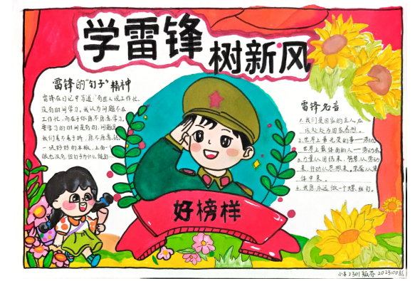 此次手抄报征集活动,不仅是一次简单的比赛,更是一次生动的雷锋精神教育实践。它让同学们在创作的过程中,深入了解雷锋事迹,感悟雷锋精神的内涵,从而激励大家在今后的学习和生活中,以雷锋为榜样,从身边的小事做起,积极践行奉献精神,传递正能量。雷锋精神,人人可学;奉献爱心,处处可为。虽然本次手抄报征集活动已经结束,但雷锋精神的传承永远在路上。我们相信,通过这次活动,雷锋精神已经在同学们的心中生根发芽,未来,它必将激励着同学们不断前行,用实际行动为社会的发展贡献自己的力量。