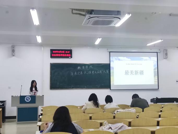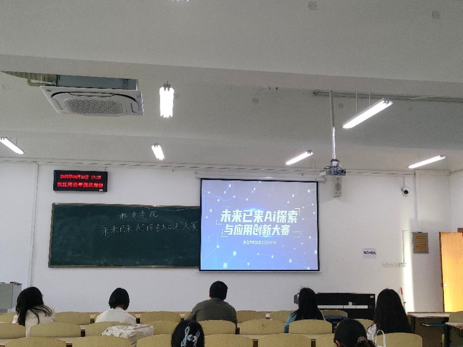 2025年4月10日17:30,西区启智楼302教室内气氛热烈。williamhill威廉希尔“Ai探索与应用创新大赛展示讲解活动”在此成功举办。本次活动吸引了众多师生前来观摩,徐华勇、袁叶叶、穆晓艳、刘瑞星四位老师担任评委,共同见证这场AI与艺术深度融合的创新盛宴。