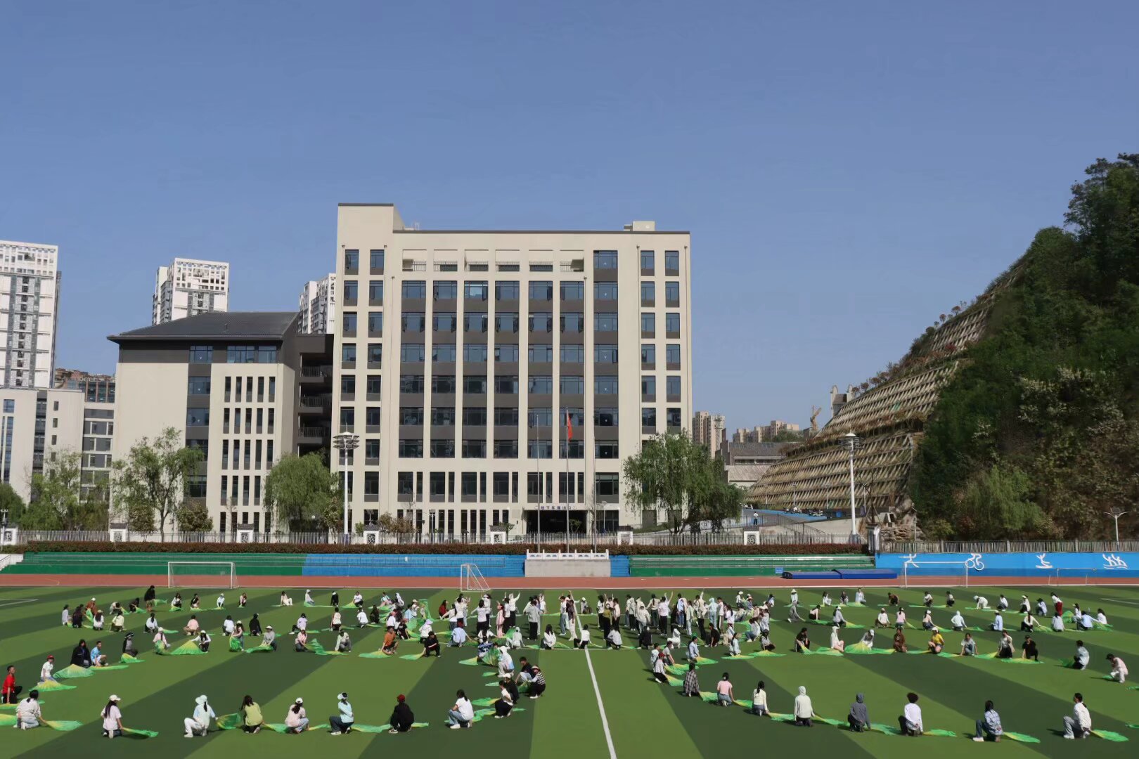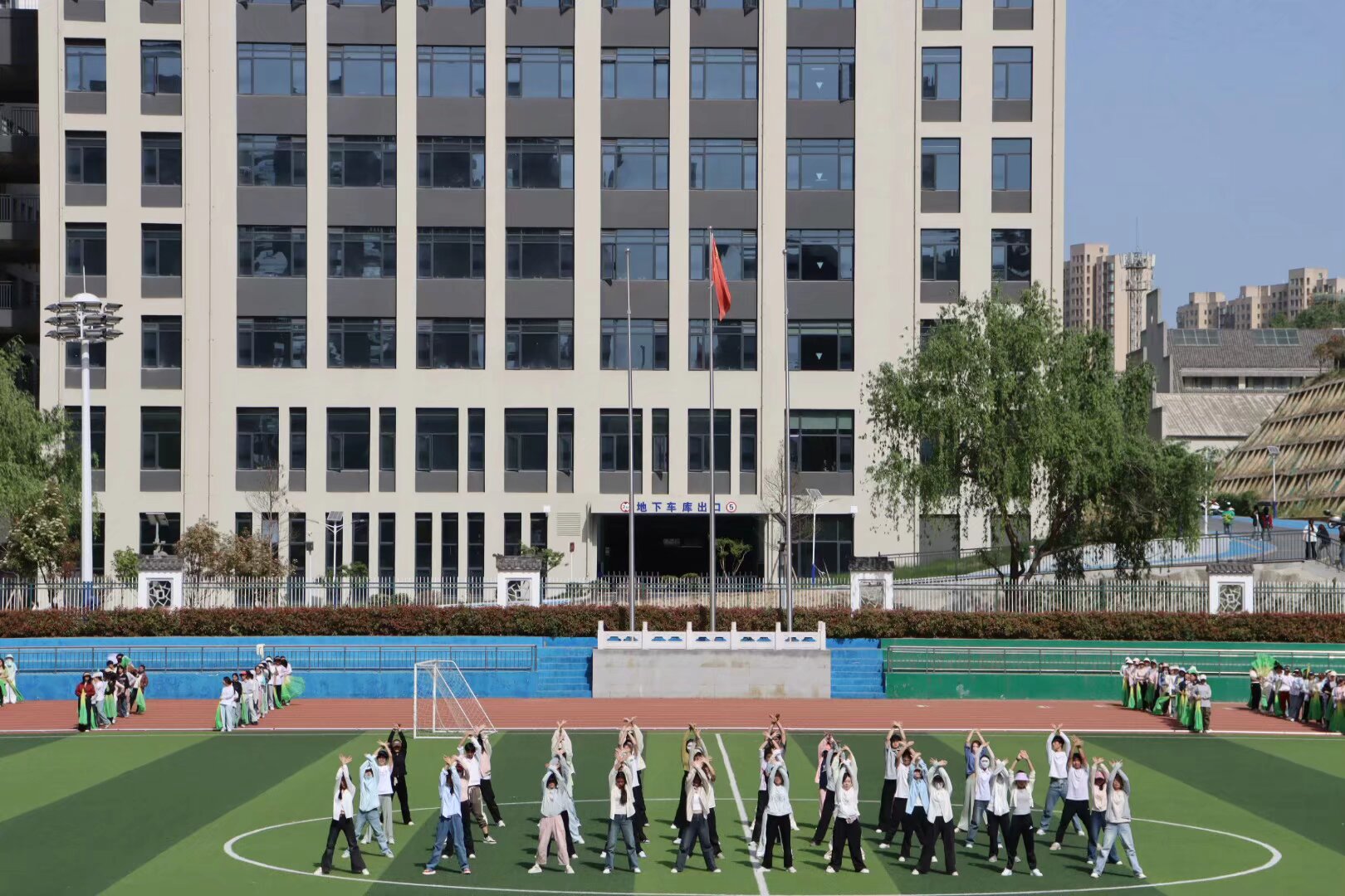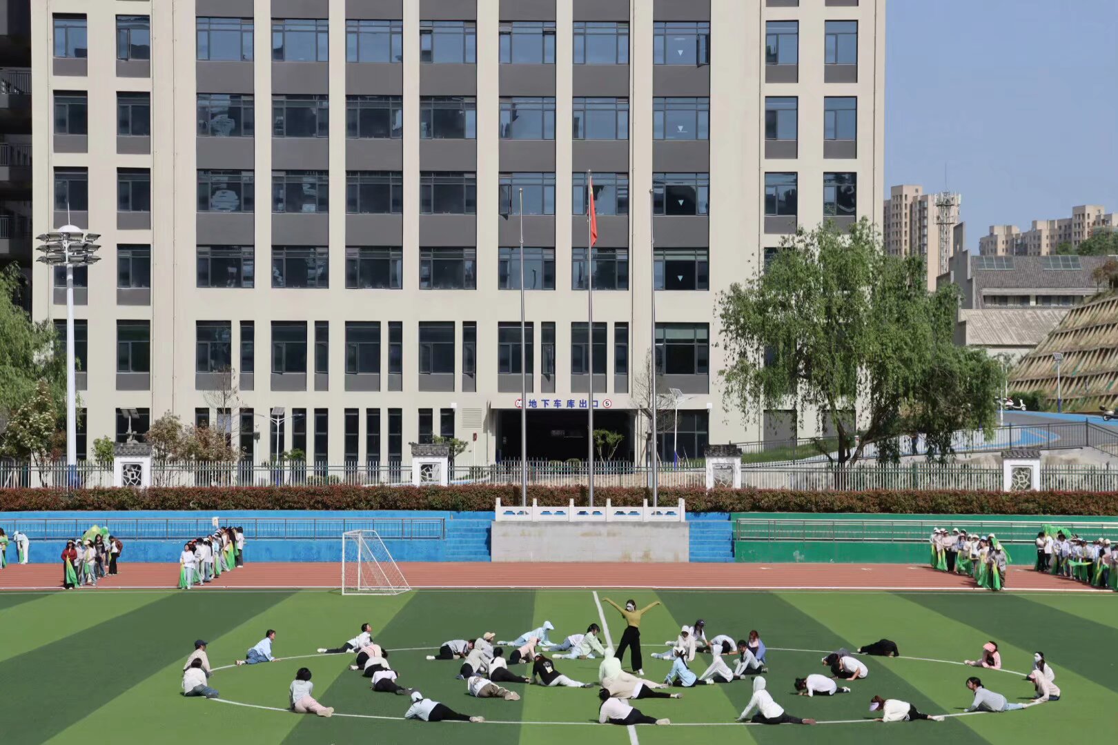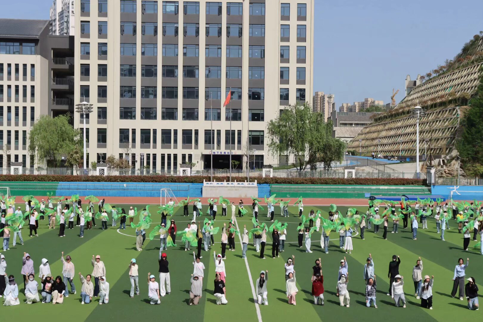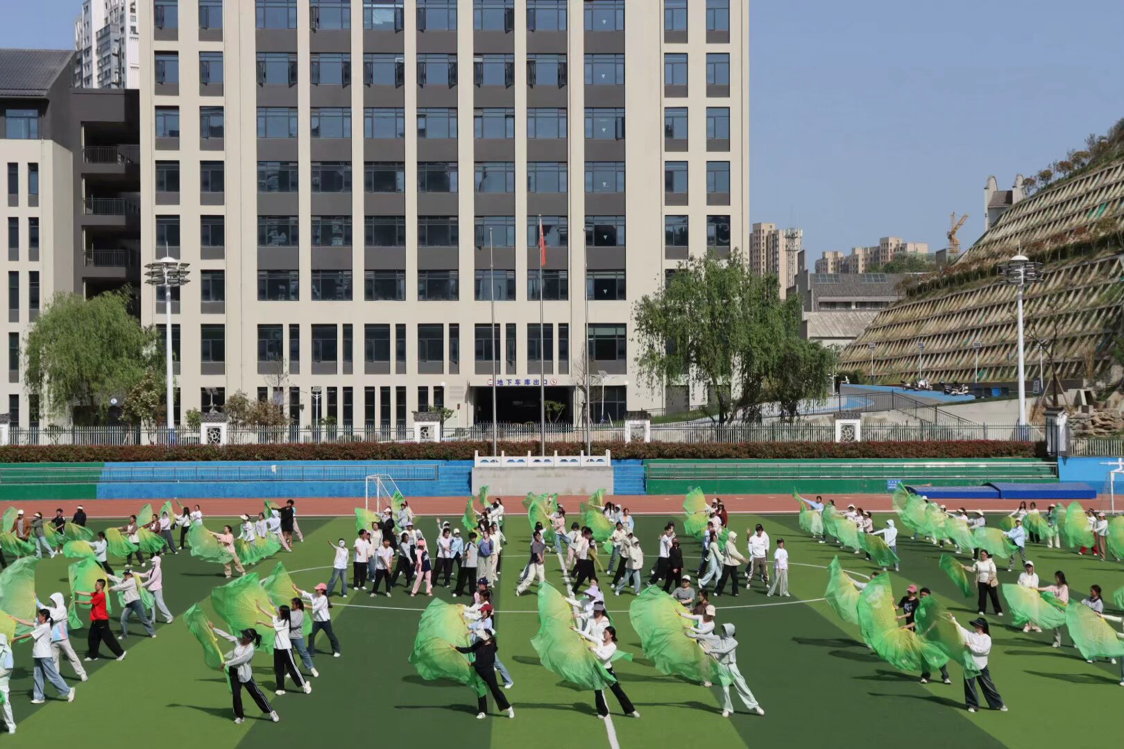 春日的阳光洒满操场,williamhill威廉希尔的学子们以昂扬的姿态诠释着青春的律动。团体操表演中,他们动作整齐划一,如波浪般起伏,将力与美完美融合。每一次伸展、每一次挥扇,都是团队协作的生动写照,展现出教院学子蓬勃向上的精神风貌。
