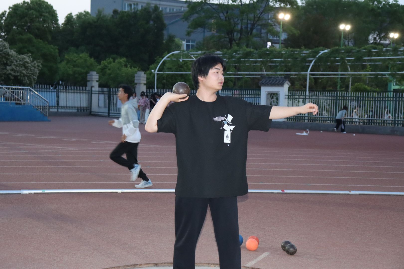 跑道上,运动员们挥汗如雨,步伐坚定有力。短跑选手如离弦之箭,长跑健儿则用耐力书写坚持;跳高、跳远的瞬间,腾空的身影划过优美的弧线。铅球选手们奋力一抛,努力拼搏。教练的指导声与队员的呐喊交织,传递着拼搏与信念的力量。