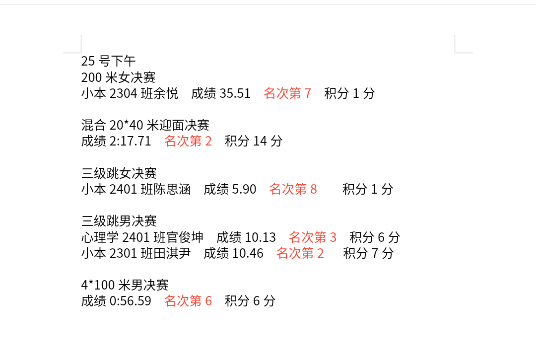 本届运动会圆满落幕,赛场上留下了太多精彩瞬间,比如4×100米接力惊心动魄的交接,跳远选手不断挑战“更远”的执着。每位运动员都用汗水诠释了"更快、更高、更强"的体育精神。这不仅是一场速度与力量的较量,更展现了团结拼搏的风采。无论胜负,每位选手的坚持都值得我们喝彩。相信这份永不言弃的斗志,将激励我们在今后的学习生活中继续勇往直前。
