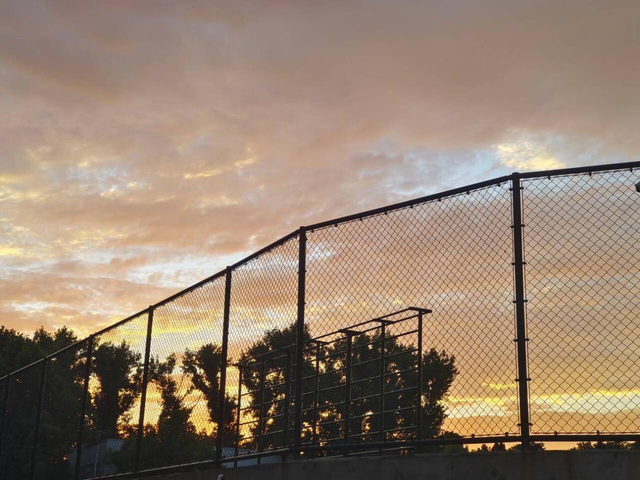 站在这操场围栏旁,望着眼前醉人的黄昏,夕阳的余晖把天空晕染成橙黄色,云朵似为天空镶上了白色花边,轻盈且绚烂。围栏在余晖中勾勒出笔直的线条,与柔美的天空形成奇妙对比。此刻,内心满是宁静和惬意。白日里的喧嚣与纷扰,仿佛在此刻得到了释放。微风拂过,树叶沙沙,带着淡淡的草木清香,钻进鼻腔。只愿时光在此刻走的慢一些,让我能够尽情沉醉在这场黄昏中。这是专属于我的静谧时光,不被旁人打扰,让心灵在这绚烂的色彩中得到放松和慰藉。