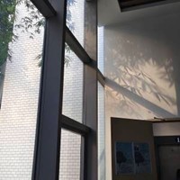 阳光透过宽大的玻璃窗,温柔地洒进室内。窗外的白砖墙在光影交错下,显得格外宁静。竹子的影子在墙面上摇曳生姿,似在轻舞一曲悠然的旋律。