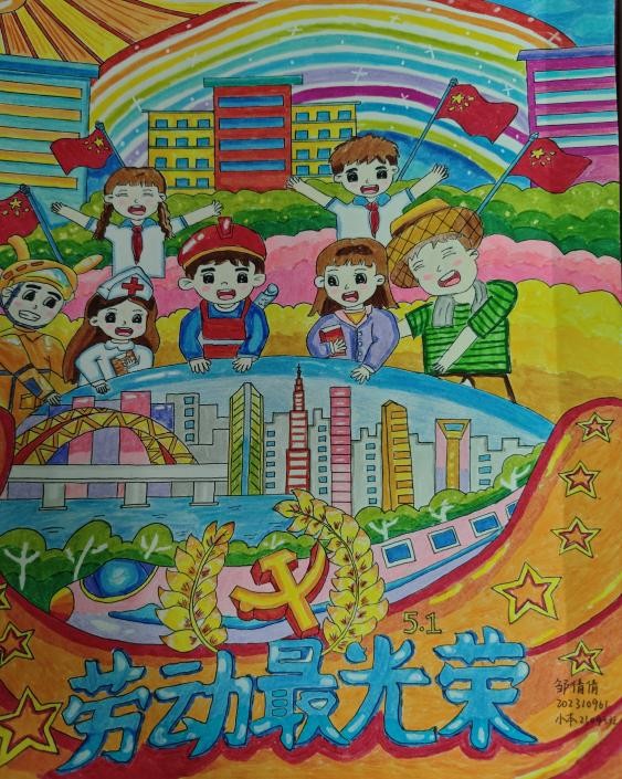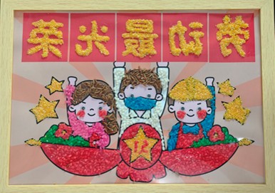 大家以灵动的双手,将劳动者的形象与劳动场景栩栩如生地呈现于作品中。就像其中一幅绘画,用鲜艳的色彩勾勒出消防员、医护人员、环卫工人等众多劳动者,传递出对不同行业劳动者的崇高敬意;还有的作品以粮食为材料,拼贴出农民劳作与丰收的画面,巧妙诠释了劳动创造美好生活的内涵;而那精美的剪纸作品,通过齿轮、工农形象等元素,展现劳动推动时代进步的意义。