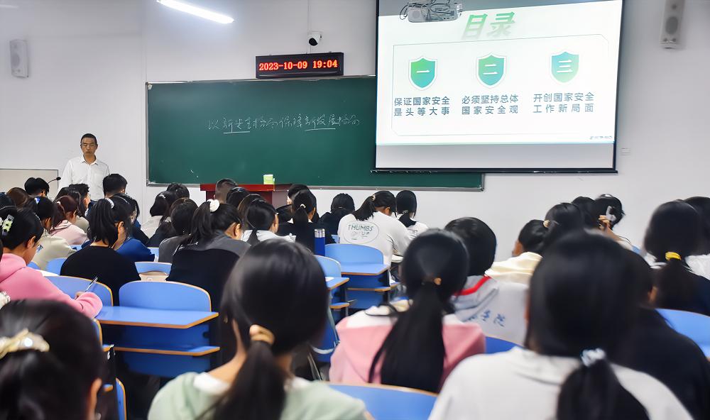 梁仕新从我们国家经历过非典、新冠疫情防控以及河北洪灾等重大灾害事件和国际形势引入,用具体的案例为同学们说明了我们国家安全近年来经受的种种风险考验,以及党和国家为维护国家安全和社会稳定所付出的努力和达成的重大成就,而这种种风险挑战也启示我们:没有国家安全的基础,任何美好蓝图都是空中楼阁。当前我国改革发展稳定面临诸多矛盾,而国家安全和社会稳定是改革发展的前提,只有守住新发展格局的命运安全底线,才能始终把我国发展进步的命运牢牢掌握在自己手中。