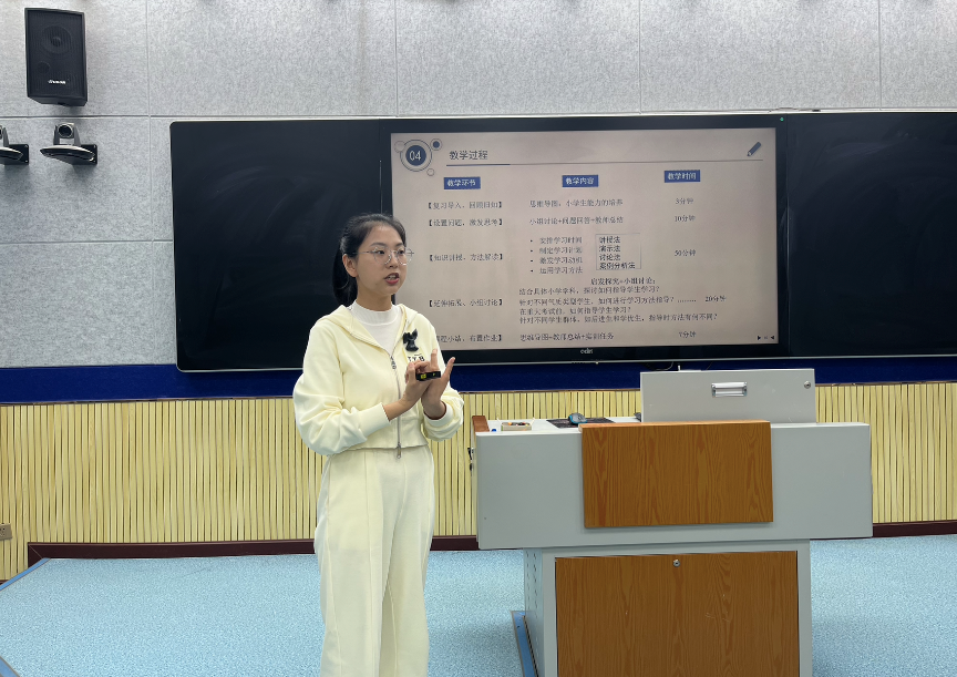孙荣老师从教学目标、教学方法、教学过程等方面对小学班级管理的课程进行展示。教学是一个互动的过程,孙老师结合具体小学学科,探讨如何指导员工进行学习。同时,她还指出,针对不同气质类型的员工、在重大考试前、针对不同的员工群体指导方法的差异性。课程设计思路清晰,与当前小学实际联系密切,实现了课程的现实指导意义。