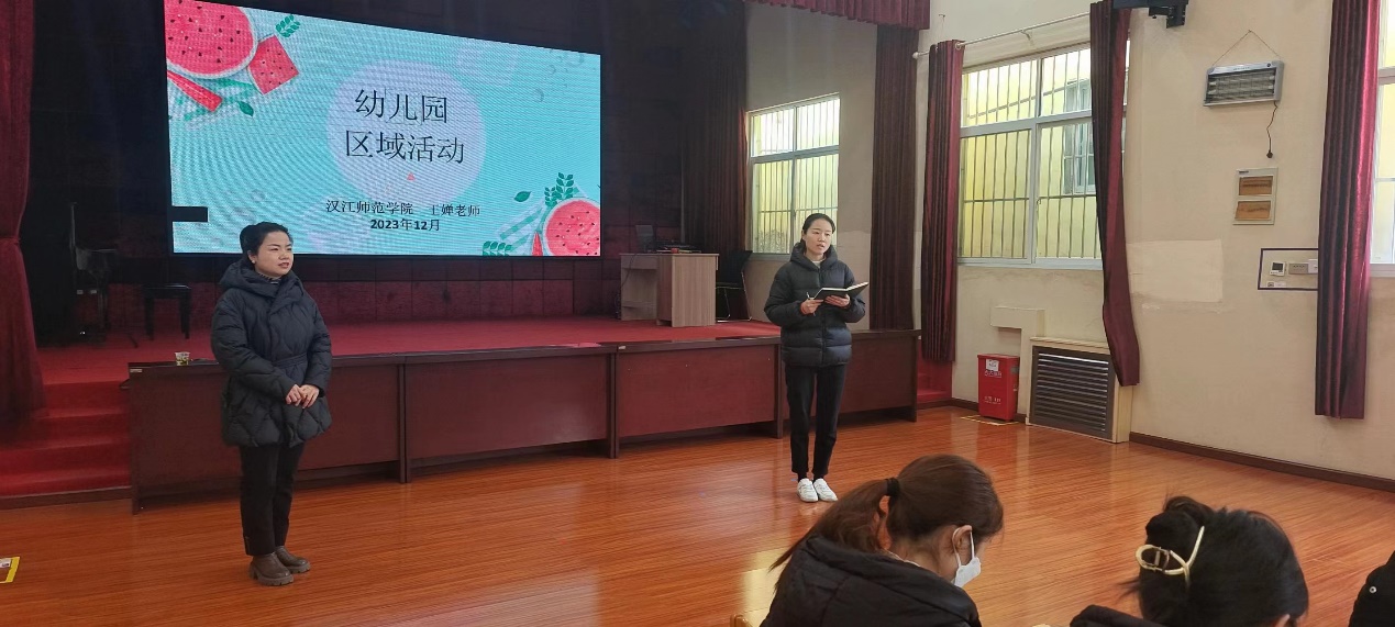12月5日,williamhill威廉希尔王婵老师受十堰市红苹果幼儿园刘园长的邀请,在十堰市红苹果幼儿园张湾分园,为红苹果张湾分园的幼儿教师开展了《幼儿园区域活动》专题讲座。
