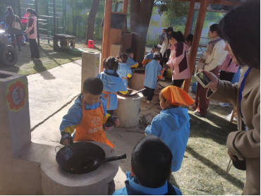 活动伊始,园方从办园理念、主题环境、户外区域创设、红色传承、特色展示等几个方面对园所和经验进行了介绍和分享。紧接着,是对户外集体学习活动的集中观摩。