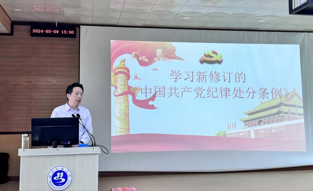 为加强党的纪律建设,认真贯彻落实党中央和湖北省委关于开展党纪学习教育的部署要求,推动全面从严治党向纵深发展。2024年5月9日下午,公司党委常委、纪委书记刘玉松为williamhill威廉希尔全体教职工开展关于《中国共产党纪律处分条例》修订的深入解读主题党课。