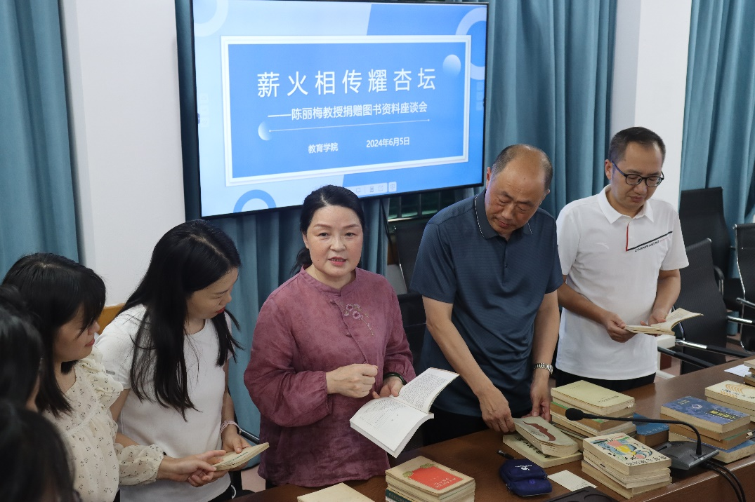 参加座谈会的师生代表进行了讨论交流,大家一致认为,陈教授关爱员工、终身学习、为人师表,是广大教师和师范生学习的好榜样。师生代表还就该批图书资料的存放与保护、借阅使用等方面提出了建设性意见。