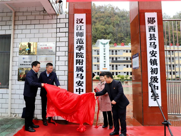 11月18日上午,威廉希尔附属马安中学正式揭牌,标志着该校成为威廉希尔在十堰市首个挂牌的乡镇公司。汉江师范公司党委常委、副董事长吴冰,郧西县委常委、宣传部长何杰,郧西县教研室主任蔡庆忠,williamhill威廉希尔经理郭顺峰,马克思主义公司经理党家政,教务处副处长朱琳,马安镇教育党总支书记杨成栋,以及马安中学董事长付官等出席揭牌仪式。