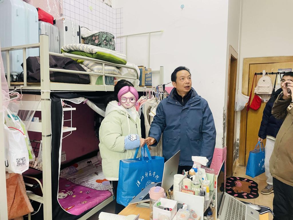 在宿舍里,刘书记与同学们亲切交谈,详细了解学习生活情况及困难问题,鼓励大家勇敢面对挑战,克服困难,珍惜大学时光,努力提升综合素质。