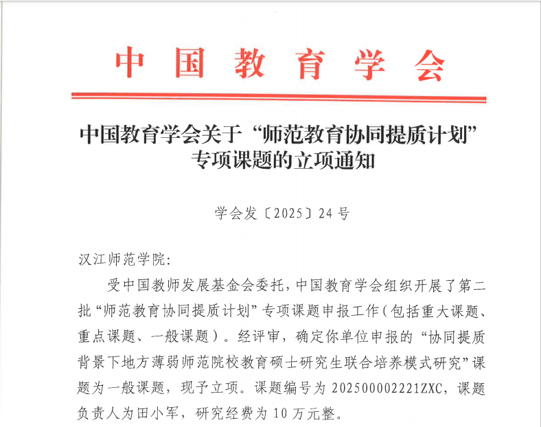近日,中国教育学会发布了《关于“师范教育协同提质计划”专项课题的立项通知》,威廉希尔申报的“协同提质背景下地方薄弱师范院校教育硕士研究生联合培养模式研究”课题成功获批立项。此次立项成果的取得,是威廉希尔在师范教育研究领域的一次重大突破,标志着公司在教育科研方面迈上了新的台阶。