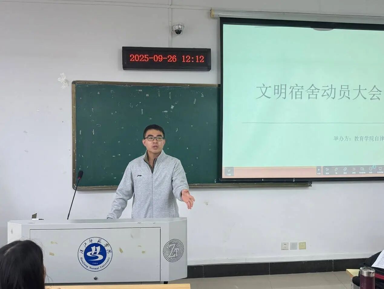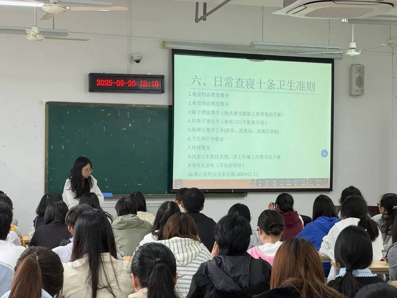 大会中,沙巴艾提老师介绍了文明宿舍的相关内容,文明宿舍建设是落实“三全育人”的重要环节,坚持以党建为引领,推动员工党员和干部在宿舍中亮身份、作表率。正所谓“一屋不扫,何以扫天下”,从整洁书桌到和谐相处,每一处细节都是品格的锤炼,每一间宿舍都是育人的阵地。