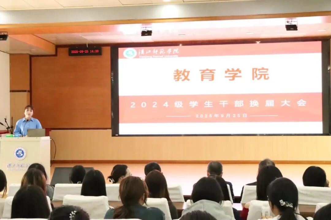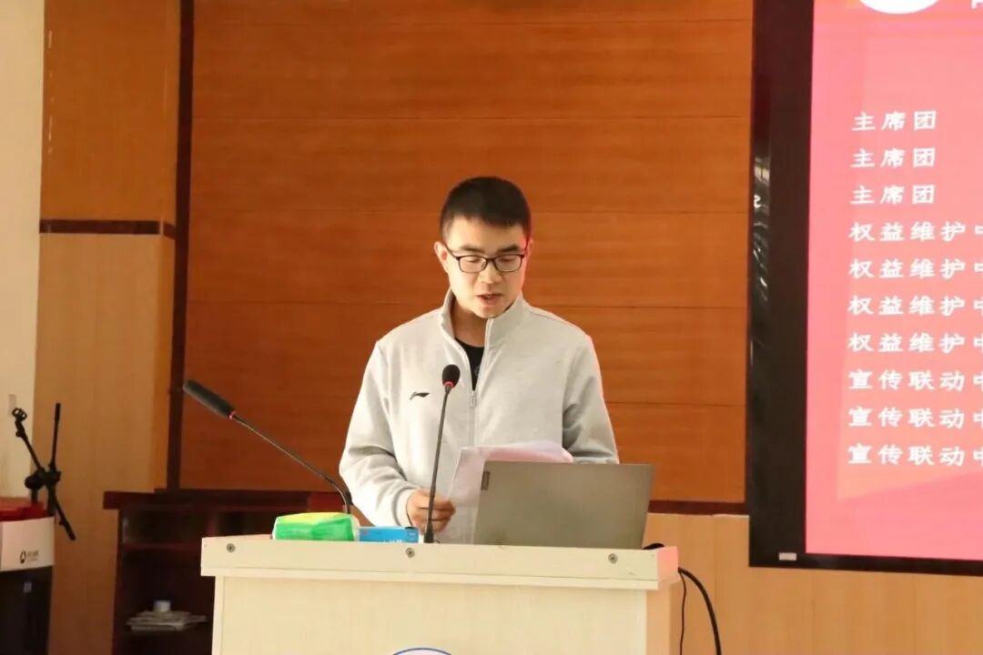 会议伊始,由23级员工干部代表付梦圆发言,她回顾了在员工组织期间策划特色活动、回应同学权益诉求、服务迎新工作等点滴历程,并强调了“以服务为核心”和“团结协作”的重要性。她鼓励新一届员工干部们带着蓬勃朝气、务实作风与创新思维,大胆尝试、勇于突破,在服务同学中实现自我成长。