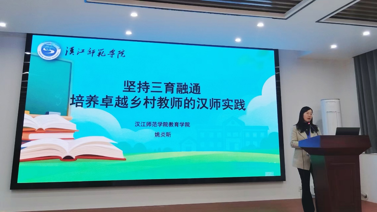 姚炎昕以“坚持三育融通培养卓越乡村教师的汉师实践”为题,从体系建构、实践探索和未来展望三个维度,全面且深入地阐释了公司在卓越乡村教师培养领域取得的主要成果、积累的宝贵经验以及未来的发展规划。