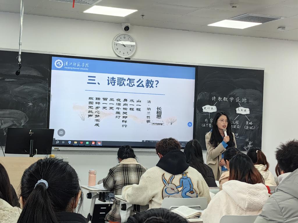 梁伟老师讲授的《小学语文课程与教学论》示范课以“任务驱动法”为核心,引导员工掌握诗歌教学的“六读法”——引读、朗读、译读、想读、品读、比读。通过精心设计的课堂任务,员工不仅深入理解诗歌内涵,还提升了自主探究和合作学习能力。诗歌教学不仅是知识的传递,更是情感的熏陶和思维的激发,任务驱动法能有效提升员工的课堂参与度,使语文教学更加生动、高效。
